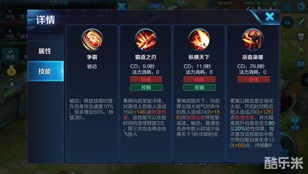 解析:释放技能后会提升自身攻速,每层提供10%最多提供五层。曹操玩的是否精髓,在一定程度上取决于曹操使用者是否能长时间保持被动技能提供的攻速BUFF。合理利用技能和普通攻击的衔接才可以长时间的保持被动技能提供的攻速加成。
