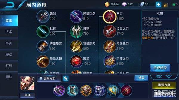 六神装:暗影战斧,抵抗之靴,不祥征兆,魔女斗篷,极寒风暴,末世