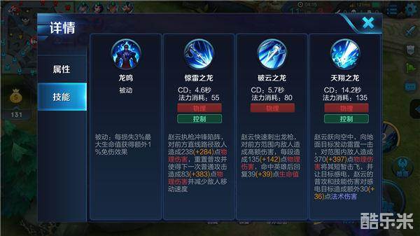 技能解析:赵云从天而降对范围内敌人造成伤害和击飞效果,并对敌人施加感电效果,感电效果可以让赵云对敌人造成额外的伤害。这个技能是赵云的核心技能,拥有强力的控制效果,同时还拥有不俗的输出能力,灵活地利用这个技能,可以使赵云在团战中发挥更大的作用。