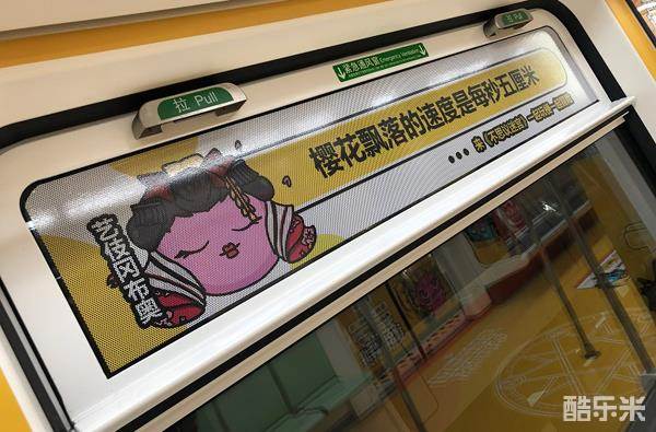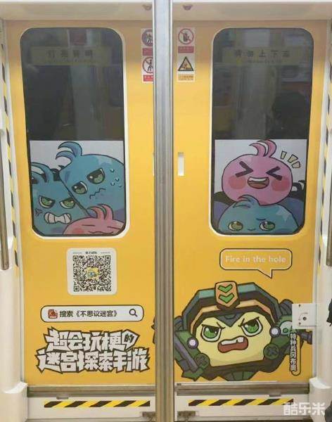 列车上的梗不仅限于动漫,还有游戏、电影等。值得一提的是,地铁里的每一条梗,都由《不思议迷宫》里的冈布奥说出,且每句话都是游戏内的一条密令,数量多奖励足,比如车门上的这个特种兵冈布奥。