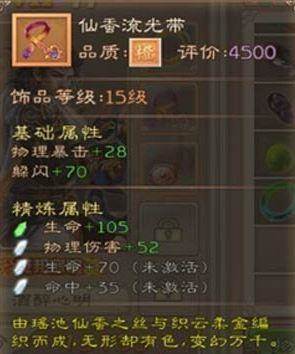 西游神魔决仙香流光带橙色饰品属性解析,这件饰品主要是和物理攻击的门派使用,这样能够增加他们的输出,还能够给他们提供一定的防御能力,这样在战斗中就不太需要奶妈时时的回复生命值,所以玩家们要抓紧时间升级哦。