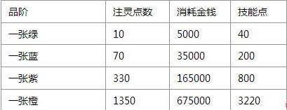 此列说明注灵效果橙色卡最好,其次是紫卡,而蓝,绿两种颜色就不太适合注灵了。