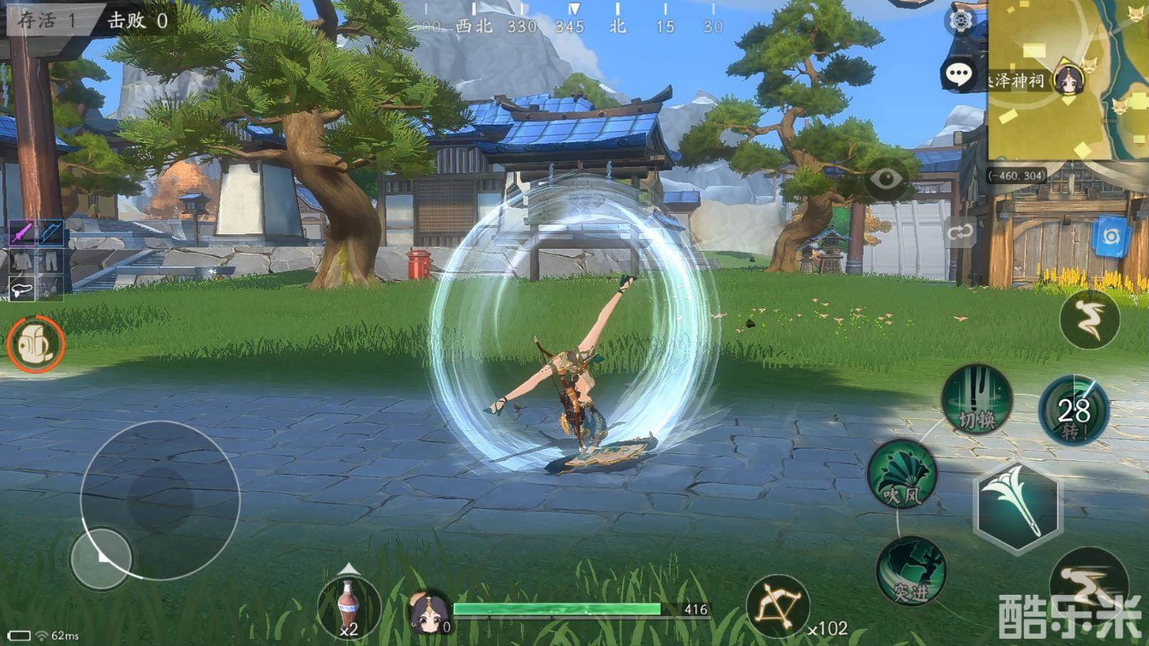 三技能【踏风术】翩翩脚下生风,增加自身移速,普攻变为远程且可在移动中释放。附近的队友也可获得一定的移速加成。