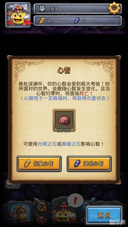 克苏鲁主题新迷宫“混沌深渊”的一大特色便是引入心智(san值)概念,身处深渊中,你的心智会受到极大考验!你的任意操作,都可能引起心智值的变化。同时,不同的心智值将获得各色奖励或道具,诸神毁灭之地的冒险将更为凶险,心智归零时,将面临死亡!