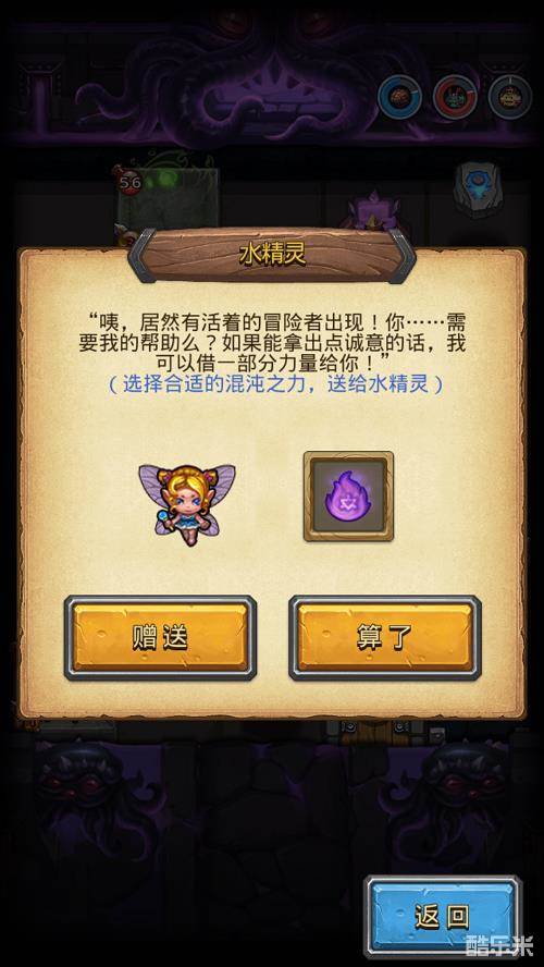 当你选择喝上一口圣泉恢复体力,选择合适的混沌之力送给水精灵,将会让你掌握6阶水系魔法“精灵赞歌”哦!