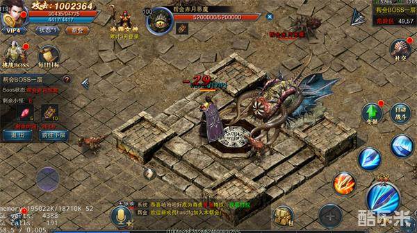 帮会BOSS活动每日定时开启,开启时间为每周三、六的19:30~20:00,每次活动持续30分钟,帮会BOSS一共有10层,击杀每层BOSS都可获得大量装备以及帮贡奖励,掉落装备不绑定,大家都可拾取,记得把上一层所有敌人全部清除掉才可进入下一层。