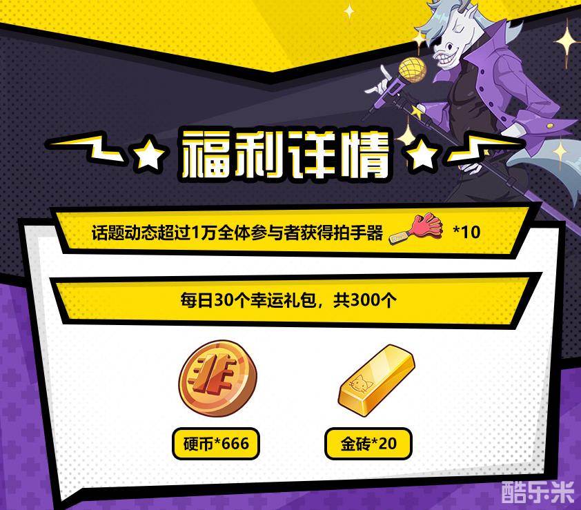 参与网易大神 #非人学园制霸大神# 话题活动,带话题标签发布【区服】和【个人资料截图】,即可寻找校友一起行动。每日将从话题中抽取30名同学送出硬币和金砖等幸运礼包!不仅如此,若话题动态超过1万条,所有参与的校友更有拍手器等福利送出!