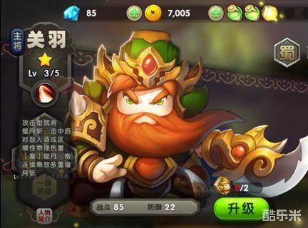 关羽这一人物相信大家都很熟悉了,在“砰砰三国”这款游戏中,关羽也是前期不可多得的一位英雄武将,关羽是蜀国的武将,专属武器是青龙偃月刀,被人们称作“武圣”,看游戏中可爱又不失帅气的造型,相信大家都已经喜爱上了这个武将。接下来我就为大家介绍下这一员猛将。