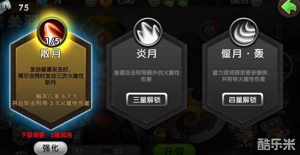 关羽这个武将在星级进阶后会解锁额外的技能加成。解锁3星炎月:普攻附带额外火属性伤害。解锁4星偃月·轰:蓄力技能释放更多爆弹并附带火属性伤害。
