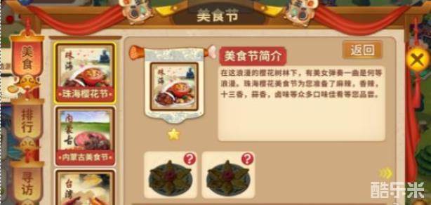 每一个主题下都会有饮食文化简介供美食家了解,每个美食节都会对菜品有要求。主题不同,主推菜品的需求属性也不同,一定要看仔细哦~确认主题后就给本次美食节起个好听的名字吧。