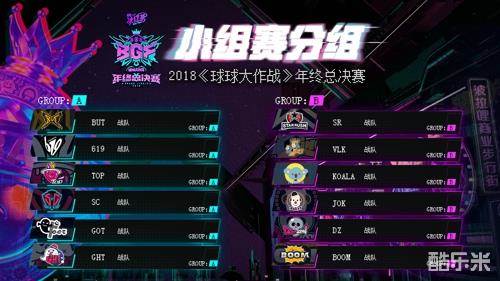 2018 《球球大作战》年终总决赛(BGF) 12月22日 小组赛分组结果已出。2018 BPL冬季赛前8和线上赛积分前4已全部分配就绪。A组虽然稳健型战队居多,但有攻势迅猛、将吞噬进行到最后一秒的SC战队,战场肯定不会就此风平浪静。B组“小组赛常胜将军”JOK、VLK战队两巨头会面,外加去年BGF冠军SR战队,三大魔王聚首,抢占出线名额。B组新生代队伍生存岌岌可危,能否顺利奇袭,突出重围。
