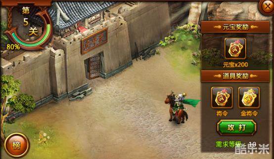 关羽过五关斩六将,成为千古名传,同样的,我们也可以在游戏中完成过关斩将的挑战!更可登上排行榜,笑傲群雄!