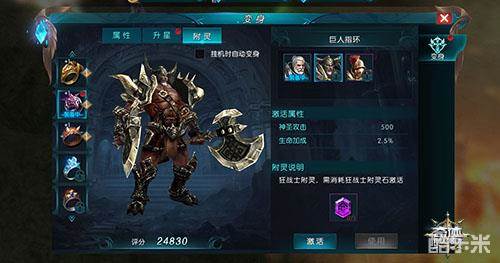 与其他经典指环一样,巨人变身指环激活后也可获得的五大专属技能。“战争践踏”跳向目标,对目标周围最多3个敌人造成混合伤害;“回旋斩”原地旋转,攻击圆形范围,最多对5个敌人造成伤害;“三板斧”连续3次攻击面前范围,最多对3个敌人造成伤害;“飞斧”将双斧向前扔出,攻击直线范围,最多对3个敌人造成伤害,并造成5秒减速效果;“远古之灵”召唤远古之灵攻击地面,将范围内的敌人击飞2秒,最多对5个敌人造成伤害。技能效果霸道,攻防属性全面,出招果断决绝,这样的巨人戒指你值得拥有!