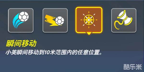 这个技能是小美的核心技能,能让小美灵活位移。铲球成功后,立刻使用瞬移,在对方还没能反应过来的时候已经将对方的球抢过来并与之拉开距离脱离防守,瞬间形成反击,快攻得分行云流水一气呵成。另外瞬移是是没有施法前摇的,只要你反应够快,在对方放技能施法期间,是可以通过瞬移来逃离对方技能的。瞬移技能还可以跨越地形,当小美被粘液减速或者被迷宫困住时,也可以利用瞬移逃脱。