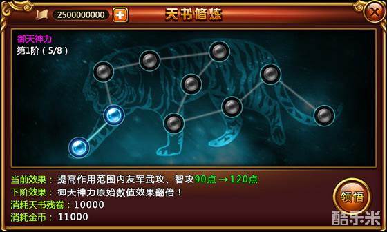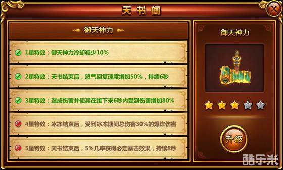 所有的五本天书都可以通过天书阁进行升级,每次升级效果都会有大幅度提升。