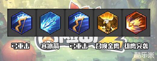 输出循环为:弓重击,贴身释放寒冰箭,然后弓重击卡住5秒CD使用即可。召唤金鹰持续时间快要结束时使用雄鹰突袭,如此循环。