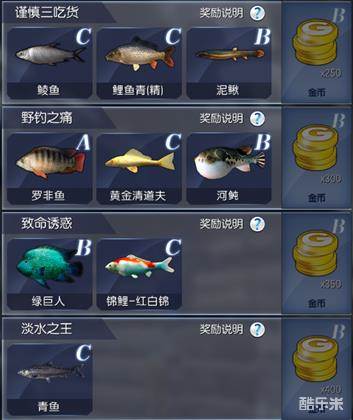 玩家可以通过集齐图鉴中的鱼,来获得金币,每集齐一样新品种,都可以获得金币奖励。钓到的鱼级别越高获得的奖励越好哦!