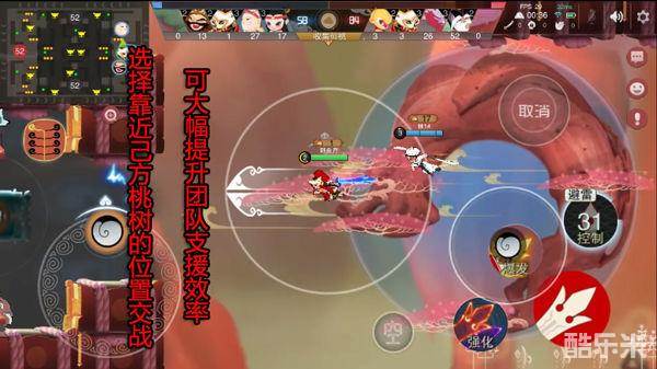 1、靠近己方桃树,由于势均力敌的对抗通常为绞肉战(不可能瞬间分出胜负),这时就可以利用离复活点近的优势让己方队友能够源源不断的进行支援,通过消耗方面的优势来瓦解对手的进攻!