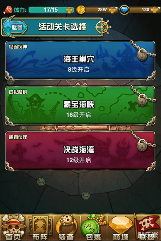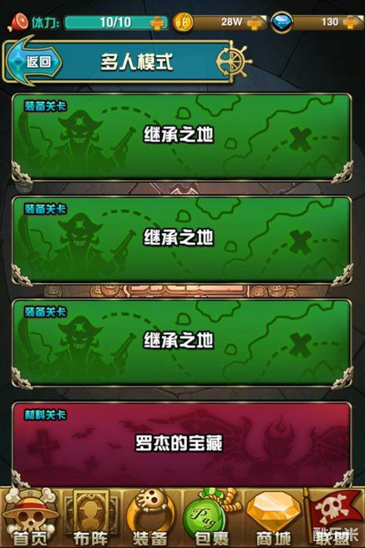 剧情关卡:体现海贼王精彩剧情的一般关卡,玩家在这里重温OP的故事和人物,进入这个关卡并不需要太高的要求。