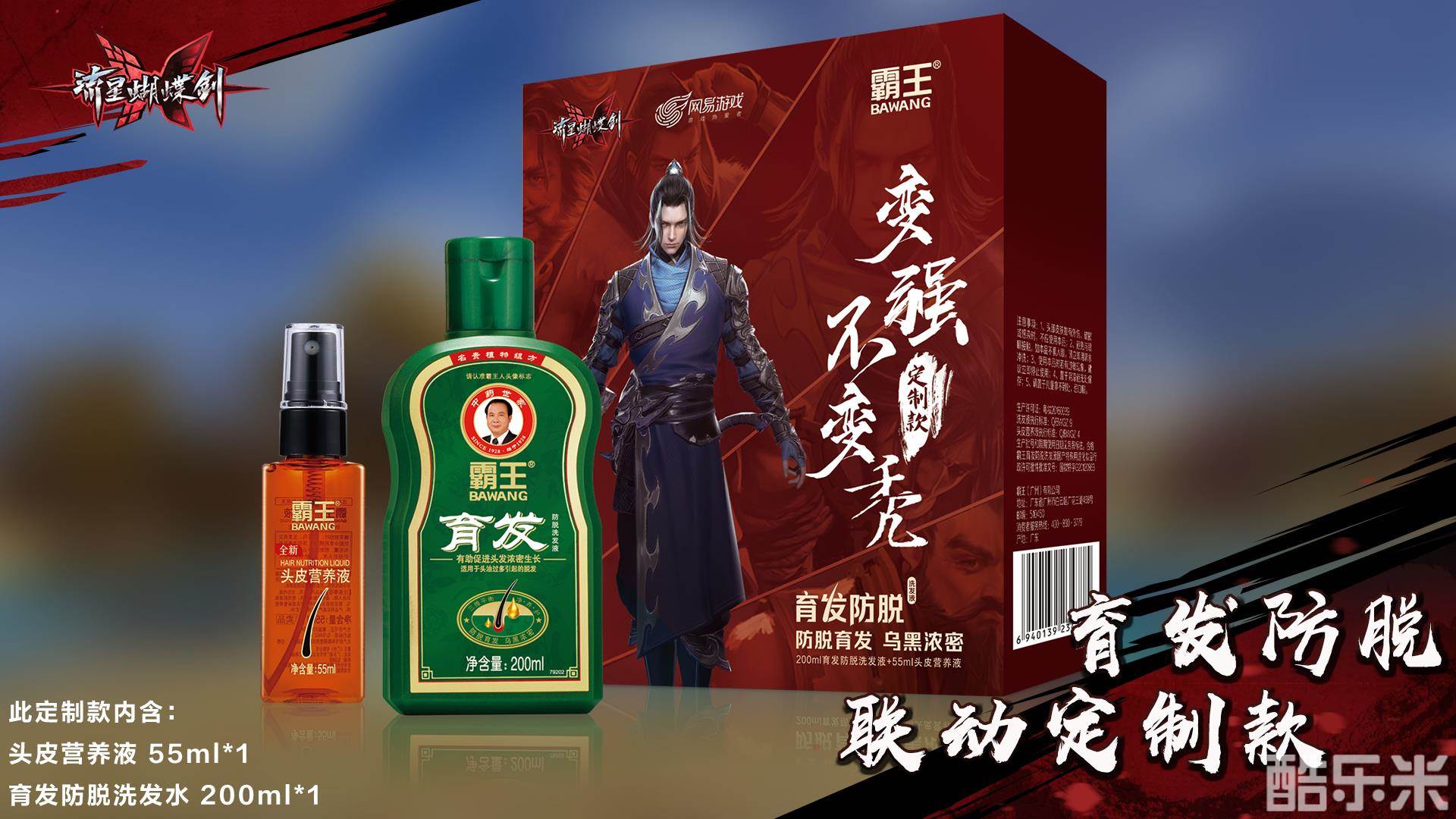 本次《流星蝴蝶剑》与霸王洗发水的跨界合作,针对大家的“头等大敌”,独家定制了霸王洗护四件套礼盒——内含防脱洗发液、马鞭草舒缓美肌沐浴露、生姜强韧焕能洗发液、植物精华免蒸焗油膏,防脱育发全面呵护。
