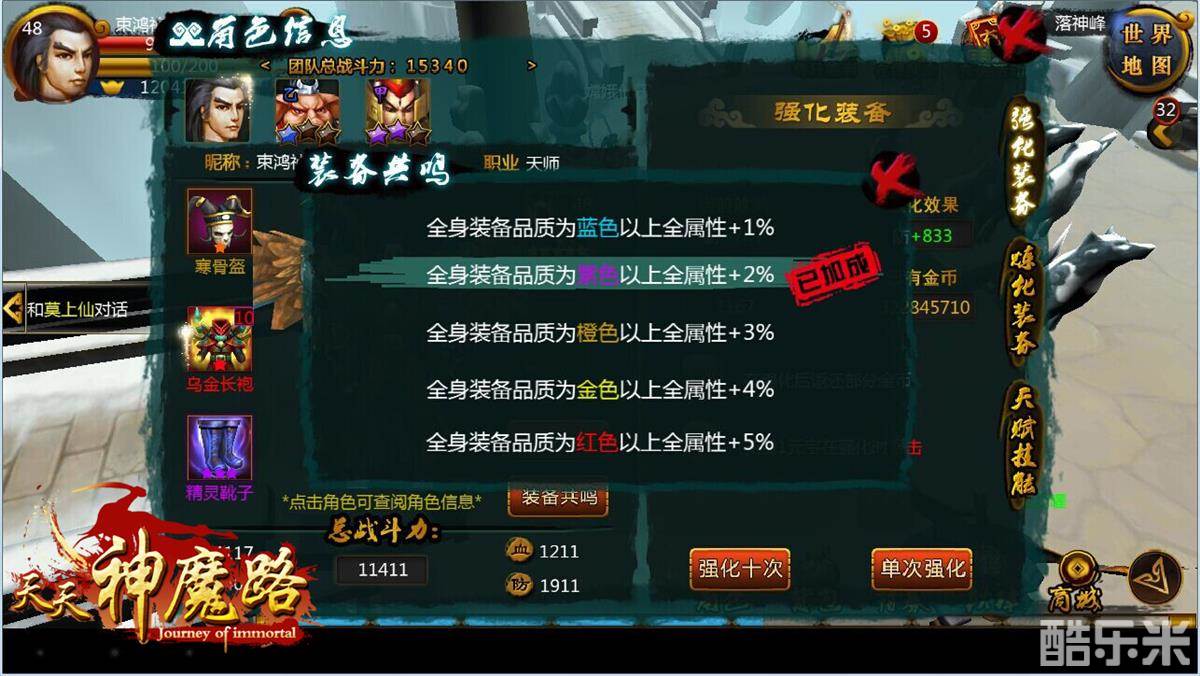 操作:1、点击【角色】-》2、选择需要强化的角色-》3、选择要强化的装备-》4、【强化装备】-》6、(可选性)玩家有两种省金币的方法-》7、【连续强化】/【单次强化】