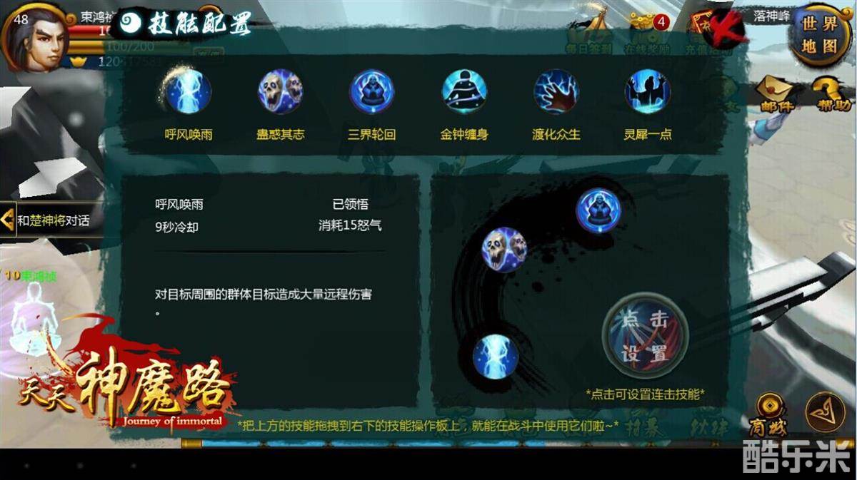 在《天天神魔路》中,游戏角色使用的技能可分为技能配置和普通攻击两种。