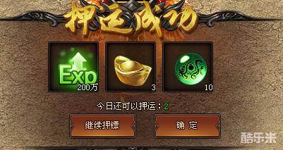 押运成功后可以获得经验奖励、元宝和玄武灵力。可以选择继续押镖也可以在双倍时间段押镖。