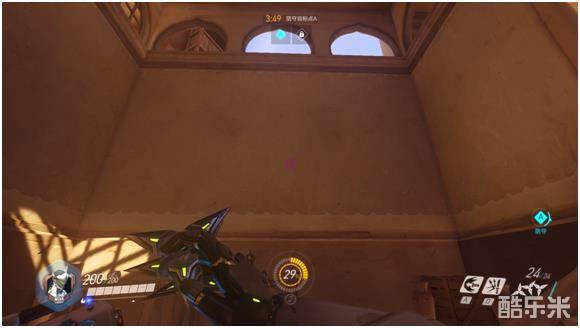 阿努比斯神殿的A点是一个相当宏伟的大门,作为防守方,你可以在这里利用震荡地雷双重跳跳到大门上,拽响引擎,之后让你的轮胎来一个自由落体,正好落到进攻方的脑袋顶上。如果你的队友有小美,你可以让她用冰墙把你抬一下,然后趁冰箱没融化赶紧开个轮胎,这样轮胎就可以直接按住空格爬到大门上面然后下落,更加猝不及防。