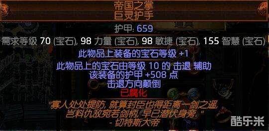 【光环】提供:+1宝石等级+3级赋予+20级火焰净化、闪电净化、冰霜净化=23级火焰净化、闪电净化、冰霜净化(这个护手也不便宜2E)