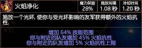 23级的【XX净化】可以提供 5% 的对应最大元素抗性。增加光环效果后:5%*(1+(60%+3%))=8% 对应最大元素抗性。(小数点后面忽略)