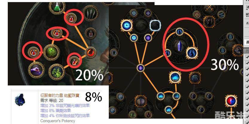 女巫上方的药剂圈、药侠进阶的4个小点和【征服者的力量】即可获得 “增加58%药剂效果”.