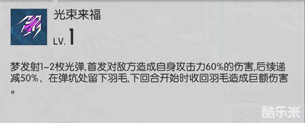 普攻技能(光束来福)可谓是玩家们的福音。初期只有1-3发十分普通,但是威力也相当高,在前期足矣。随着技能升级,9级后能达到2-5发,满级有着第一发80%的伤害,打穿高防血厚的boss,梦酱是首选呀。