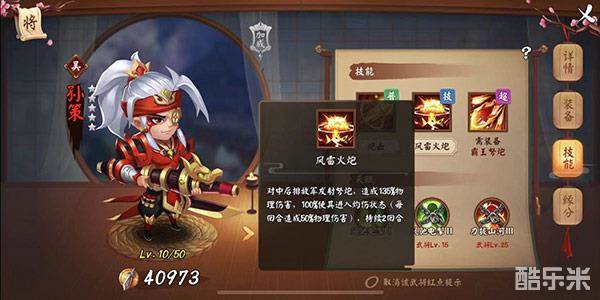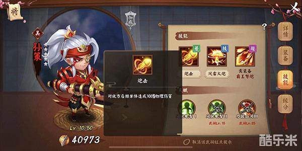 孙坚不仅拥有经商头脑,在实战中更是强无敌。他攻高血厚,是当然不让的猛将。并且,在战斗中,孙坚擅长单体攻击,及吸血回复生命值,在爆发强大破坏力的同时,还能保证自身屹立不倒,绝对是敌人不愿遇见的恶梦。