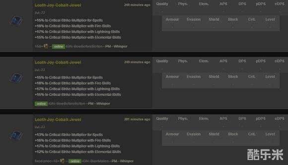 举个栗子,有人在裂痕联盟18ex买了个4词缀增加元素暴击倍数的珠宝,用神圣石洗了一下转手标价150ex出售。还在论坛打广告说用自己玩了两年解放流终于打造出增加65%暴击倍数的神珠宝,结果被人贴图打脸了。这珠子确实值得用镜子复制了,只有商人有足够的资本和眼光在市场上捡漏,转手100ex的利润来自于长期的经验和知识积累。POE顶级稀有物品价值远超过顶级暗金,对稀有物品价值的认识需要对物品的词缀体系有全面的了解,所以商人和工匠一样精通物品的加工制作。