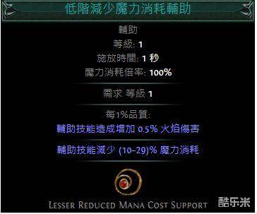 【低阶减少魔力消耗(Lesser Reduced Mana Cost Support)】:正如你所想,RIP光环魔力保留(没有减少光环保留)。