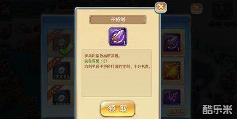 干将是一个紫色的单剑武器,武器目前在游戏中只能靠玩家游戏签到获取,这个武器算是一个绝版的武器,它的装备等级是37级,要求玩家的武将等级非常高,战斗力加的也是非常高,武器适用于步兵。