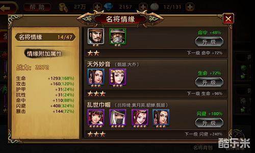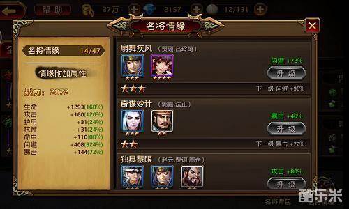 在《刀锋无双》中,名将情缘可不仅仅只属于英雄与美人,也属于情义相交的好基友们,以及惺惺相惜的尘世知己。将赵云、张飞、马超、黄忠以及关羽五位蜀国能将收入麾下,即可激活情缘五虎上将,极大地提高暴击率;将刘关张三人收入麾下,可激活情缘桃园结义,大幅提升护甲;将大乔与貂蝉收入麾下,可激活情缘倾国倾城,大幅增加闪避……除此之外,提升各名将的实力,还可以给情缘升级,获得更多属性加成哦!