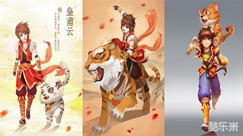 作为游戏的主角,也是人气最高的男性角色,在绘制过程中列位‘重点对象’。首先研究了皇甫云的故事背景,再结合他的人物性格以及他与小老虎之间的羁绊,我们将他定位为一位:乐观、开朗、勇敢、快乐的少年。在绘制时出现了多种形象方案,各有不同,我们挑选了最符合游戏人物形象的作为新的立绘图。