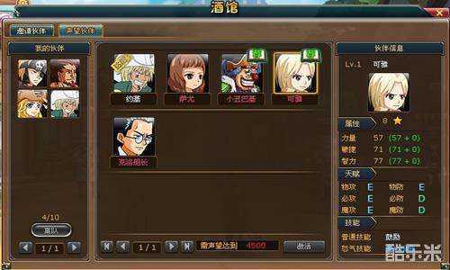 伙伴,也就是长期盘桓在酒馆的海员,他们可不是你想邀请就会接受的,重点就在你需要有足够的声望证明自己是一个有抱负有理想的海盗,他们可不是那么随随便便就可以招揽的,拿出你那长长的可以出书的海上经历来诱惑他们吧!他们最终会被你打动的,只是你还需要更努力。“不努力就妄想海员们跟随你?你吃错药了吧!”酒馆女老板优雅的吐了个烟圈嘲笑道。立志成为大海盗的玩家们,还不攻略掉旅馆女老板?相对而言还是伙伴们更容易攻略。