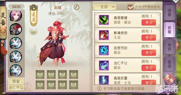 同时,宠物还需要打上技能书。一个宠物最多携带十本技能书,其搭配原理和魂印相似。