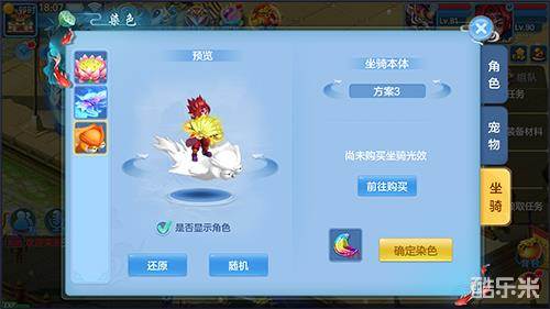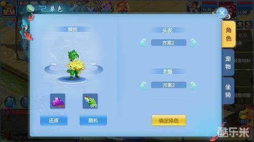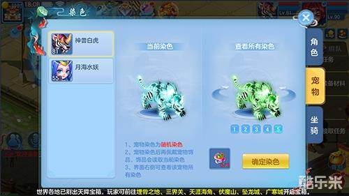 一般宠物都有多种染色方案可以选,比如银色的神兽虎,染色基本是全身都会变成另一个色调,对于那些对个别颜色有特殊癖好的可以尝试下,仅花费三朵珍稀七色花就行。
