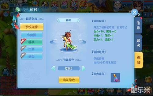 翅膀的染色就有更多的选择,因为游戏中一共有20种翅膀造型,每种翅膀都提供4种染色方案,和人物坐骑这些搭配起来,衍生出来的染色组合就是数以万计的,相信有了这一整套的染色系统,各位书友在天书的世界里能认识各种形形色色的朋友~