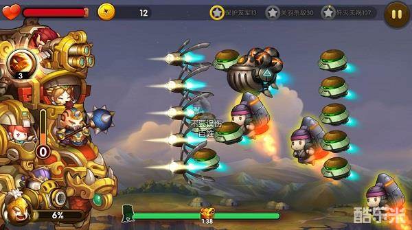 而另外一种,则是NPC背后背着火箭的,注意,这种NPC不会被怪物撞爆,但是会受到友方子弹伤害,所以要注意在游戏中点击机枪和炮台关闭自动射击,以免误伤。而武将的蓄力技、守护者冲撞技能、关卡掉落的激光炮在使用的时候都要注意避开NPC,以免将NPC秒杀无法满足通关条件。