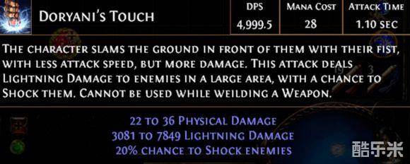 主要输出技能,D哥之触(即以前的天谴之拳改版,原暗金玩具手套多里亞尼之拳 3.0版本自带技能)