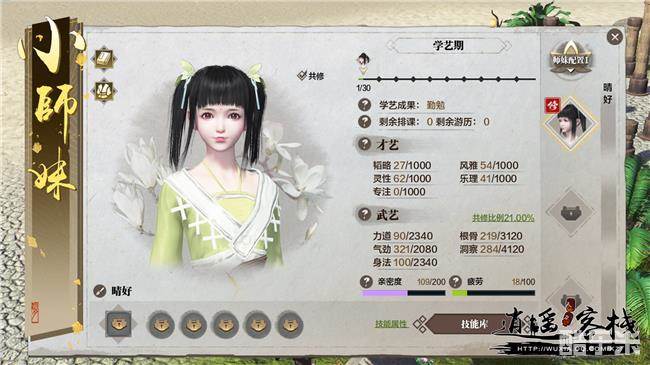 一、为小师妹量身定制教学课程,增加才艺、武艺等属性值,进而提升综合实力。