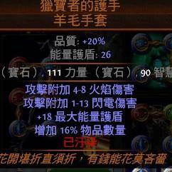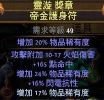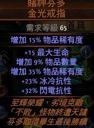 火灵的伤害基本都在一根仗上,所以其他部位可以根据需要自由地变换。我自己的话,打绿门是一套装备(最高输出),打宝是一套,练级是换上2个经验戒指和经验头(我个人比较喜欢这样。。。其实并没有太大卵用),加上这套天赋的12个珠宝孔,可随意控制抗性等不足的属性