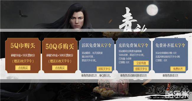 1.活动期间每累计充值达50元,也可领取天字令1枚,单角色活动限领10次;