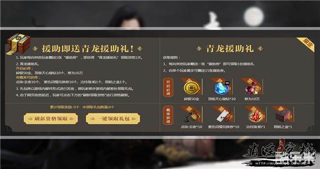 1. 玩家每向其他玩家赠送1张“援助券”,即获得 “青龙援助礼”领取资格1次。