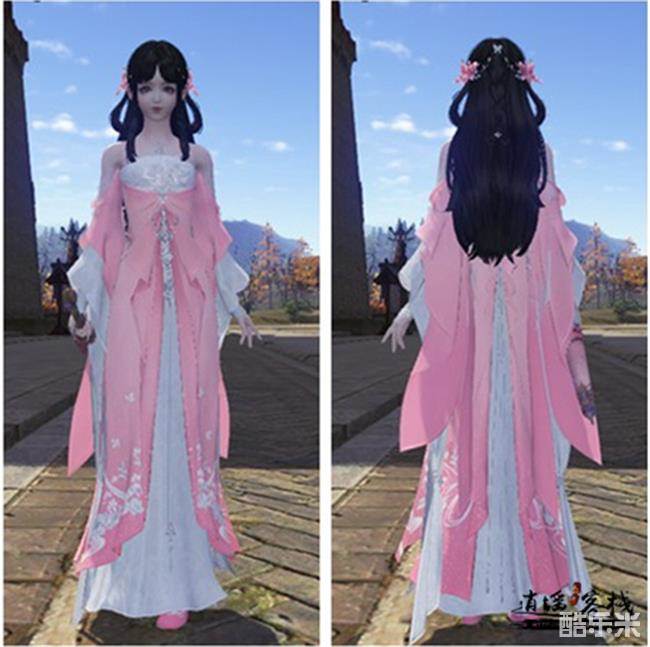 发型方面,与成女较为细致的风格不同,少女体型的发型梳成了两个环状,刘海为齐刘海,但中间有一丝的中分,没有齐刘海的沉闷,这样的刘海更为活泼,少女体型的发饰则是代表天香门派的桃花,简单的佩在脑后,娇小可爱的天香小师妹,试问有谁能不爱呢。
