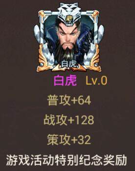 | 白虎 | 紫色 | 32策攻+64普攻+128战攻 | 通络丸+金香玉 |